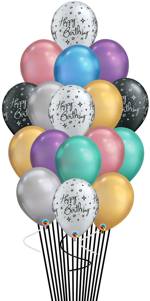 Order this Assorted Chrome and Sparkling Birthday Balloon Bouquet