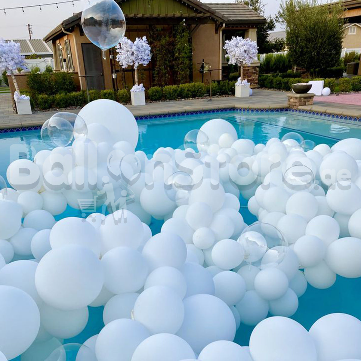 For pool parties, use floating balloons or balloon clusters around the pool. Floating balloons add a playful yet elegant touch, while clusters around the pool’s edge create a stunning visual effect.