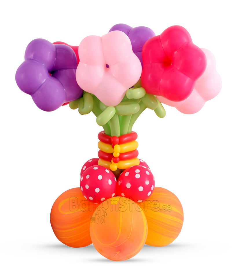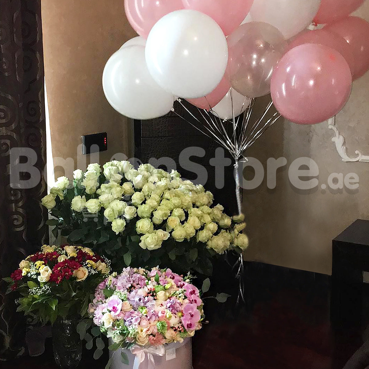 - Pink & White Latex Balloons With Mixed Flowers Party Set-Up Balloon & Flower Set