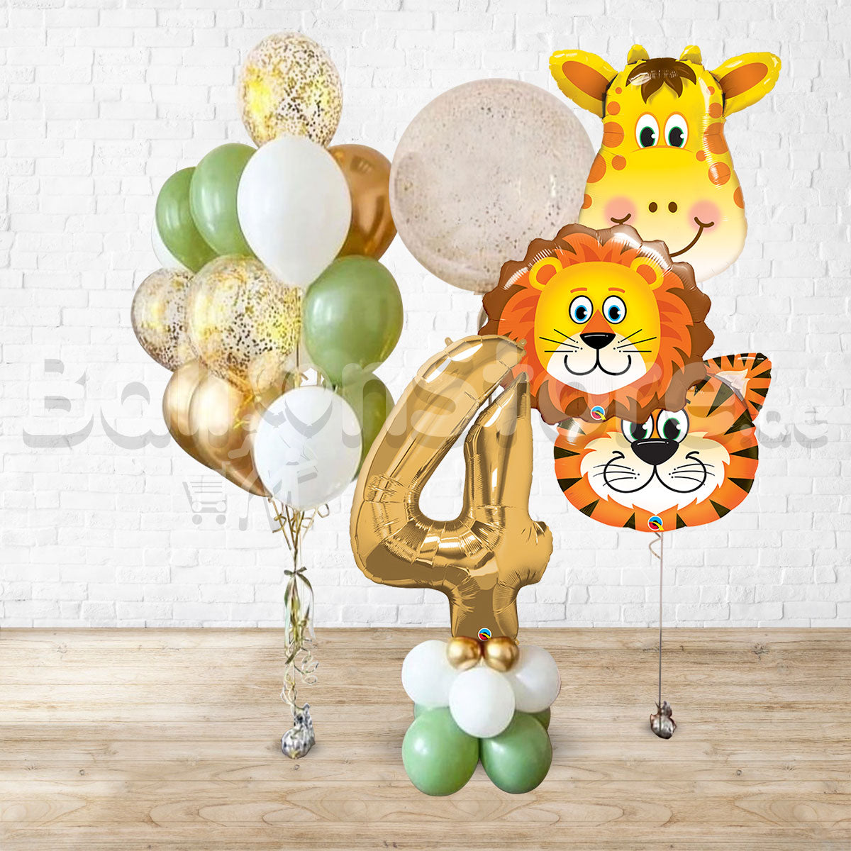 Any Single Number Jungle Safari Confetti Latex and Chrome Balloon Set