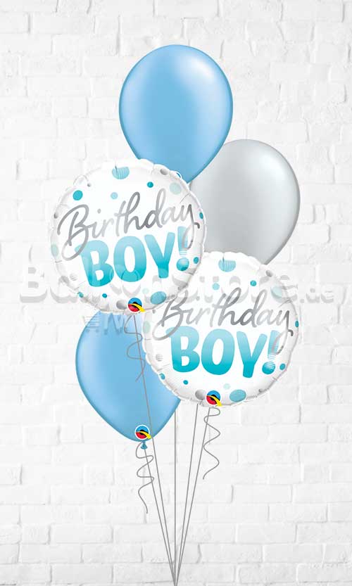 Buy this Birthday Boy Blue Dots Foil Balloon Bouquet
