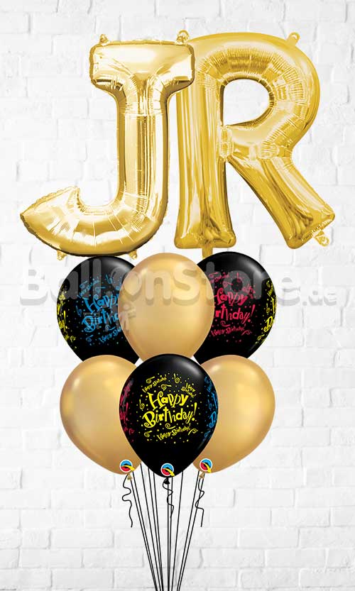 Buy this Any Two Letter Birthday Blast Wrap Gold Balloon Bouquet
