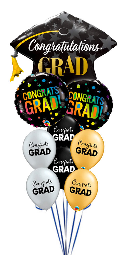 A graduation grad-cap balloon bouquet is another fun way of decorating a congratulatory party for the successful completion of graduation. This bouquet is ideal if you are going to organize a small party. Use different congratulation balloons to decorate the venue perfectly.