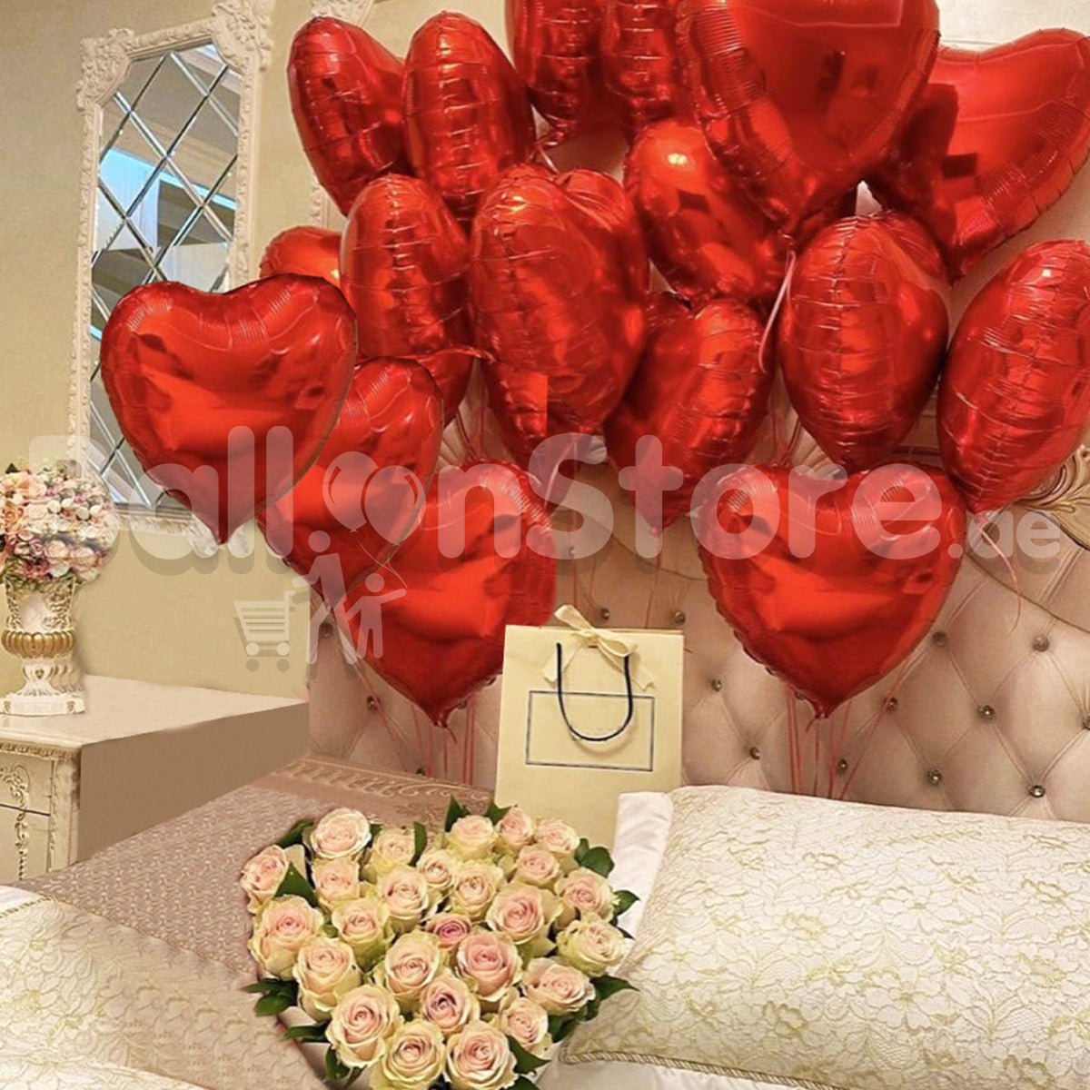 - You can also add a small flower bouquet with the balloons. Flowers will make the decoration look even more beautiful. We have lovely flowers and balloons that you can use for this decoration.