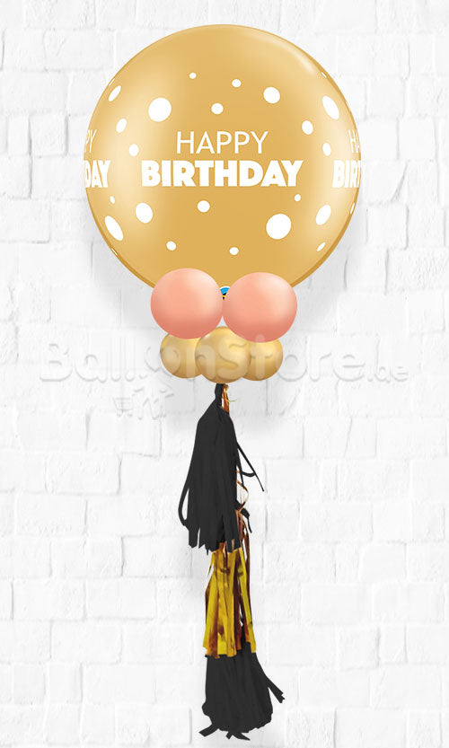 Buy now this BIG Gold Birthday Big Cluster Balloon Inflated with Helium