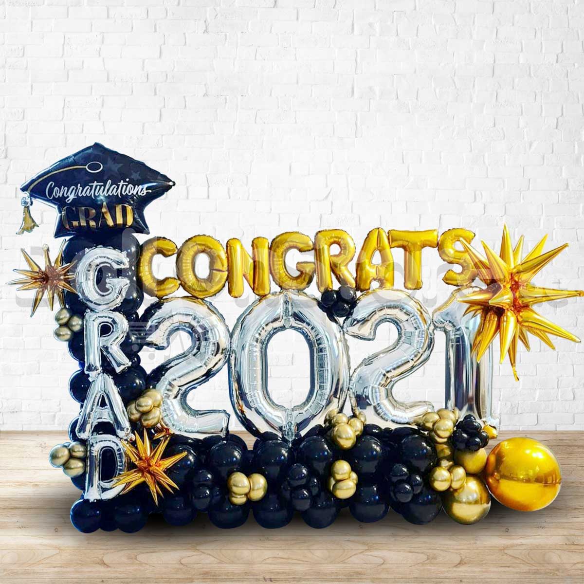 A striking balloon display adds color and character to the event, offering students and their families a cheerful spot to pose for pictures and celebrate their achievement in style.