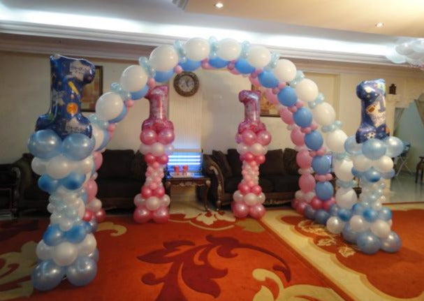 A number balloon arch is a great way to show how old the birthday person is. You can use balloons shaped like numbers. Then, make an arch around the numbers with smaller balloons. It makes the numbers stand out and look exceptional.