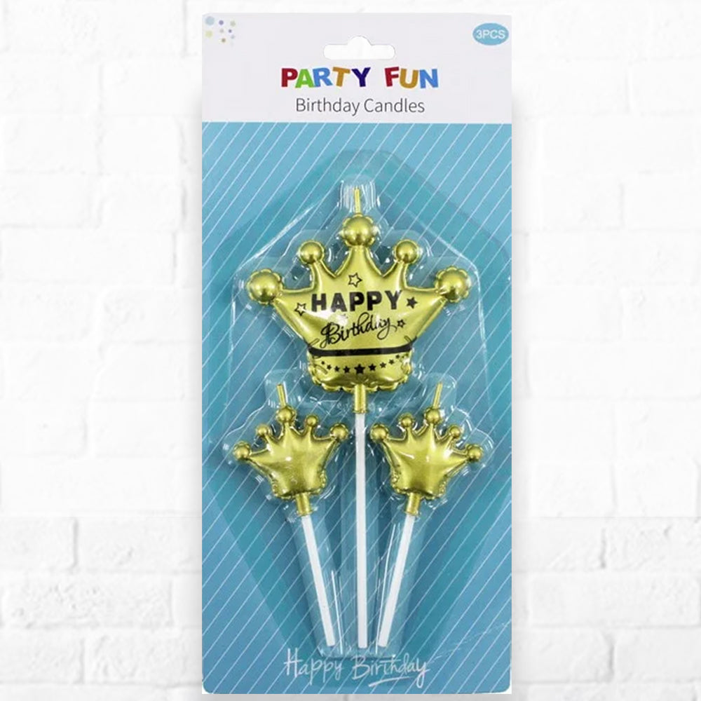 Golden Crown Party Candles - Set of 3pc