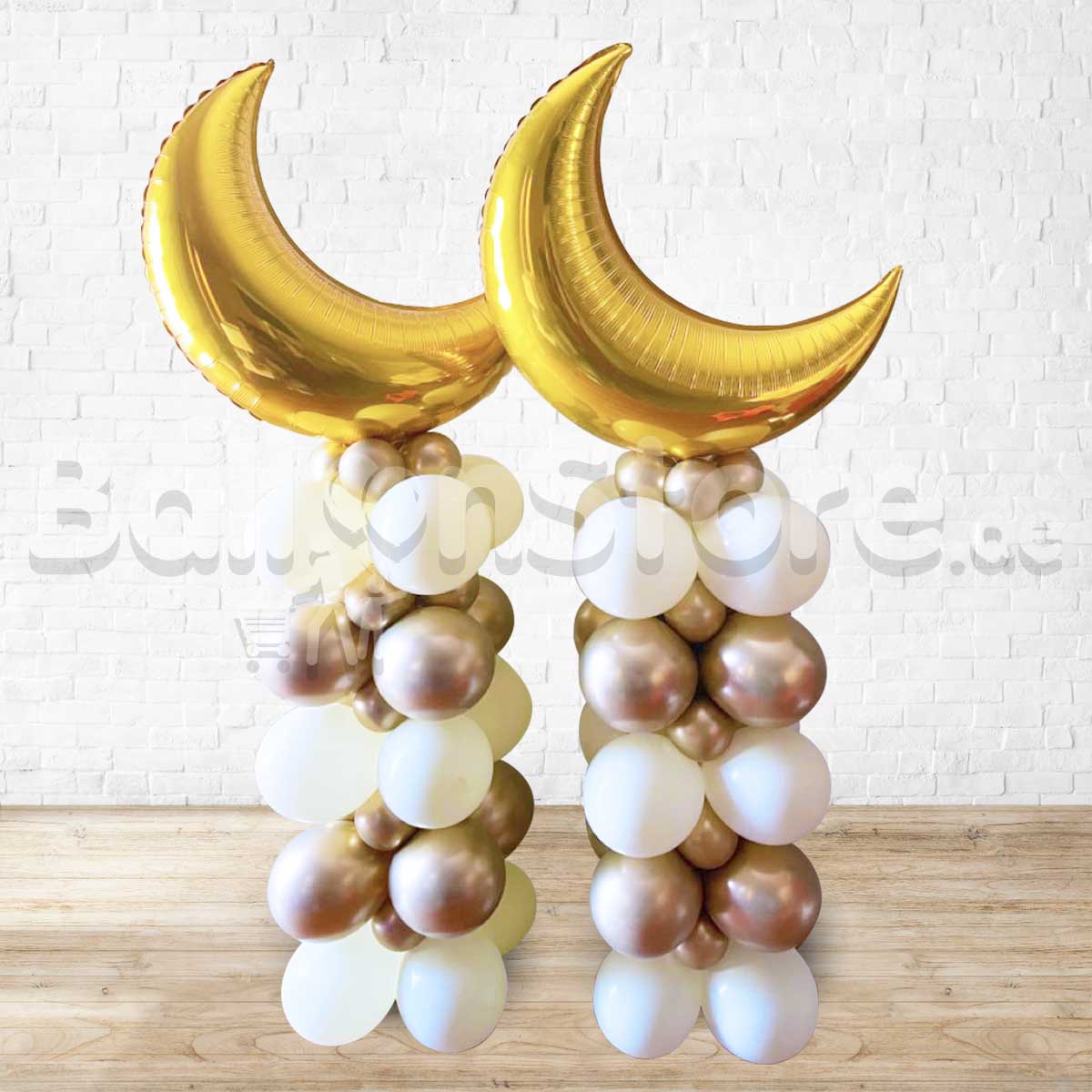 Balloon pillars are attractive decoration choices for special events like Eid al Adha. You can go for a set of two classic chrome balloon pillars with a foil star balloon at the top.