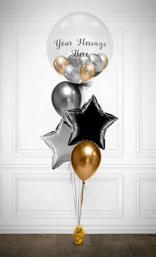 - Bubbles Custom Text And Star Chrome Balloon Bouquet - PRE 0RDER