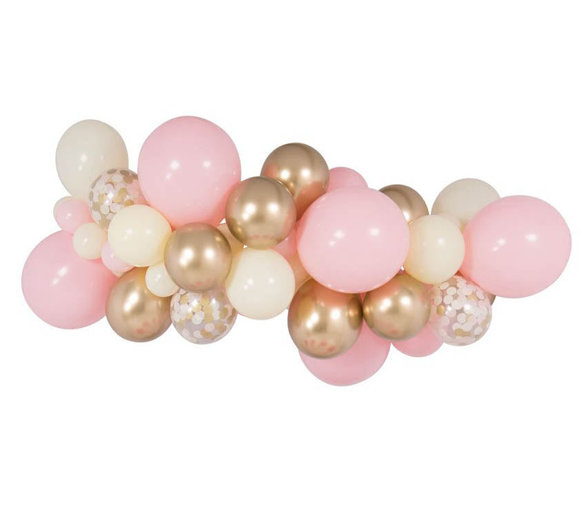 A balloon garland in gold and white adds a modern and elegant touch to any event setup. It can be draped over tables, wrapped around staircases, or used as a backdrop. Mixing different balloon sizes creates a fuller and more dynamic look, making the decor stand out beautifully.