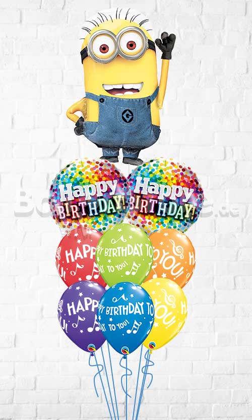 Order now these Minions Shape Colorful Confetti Birthday To You Balloon Bouquet