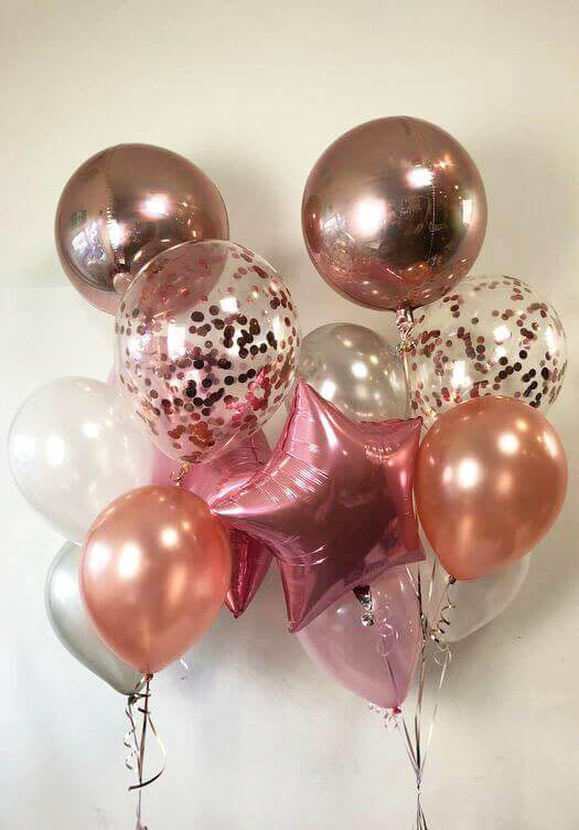 If you want a twist on the regular pink and gold theme, try rose gold foil balloons. Rose gold is a mix of pink and gold, and it looks warm and trendy. These balloons are perfect for making your party fun.