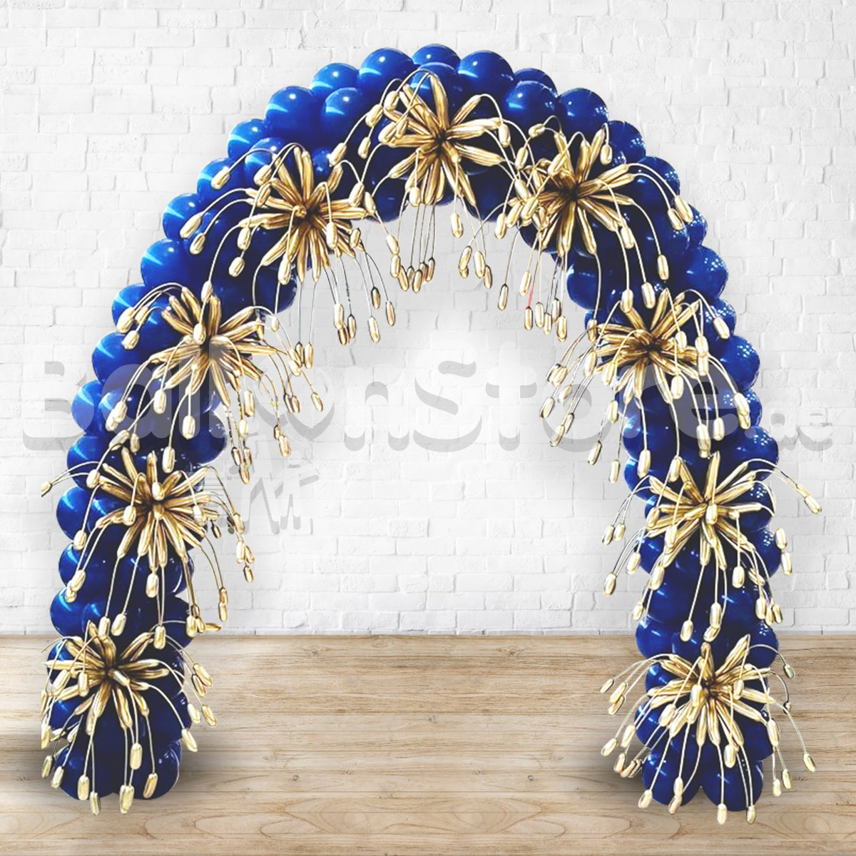 Use royal blue and gold balloons to make the arch stand out. Mix solid blue balloons with shiny gold ones for extra sparkle. You can even use balloons of different sizes to make the arch more interesting.
