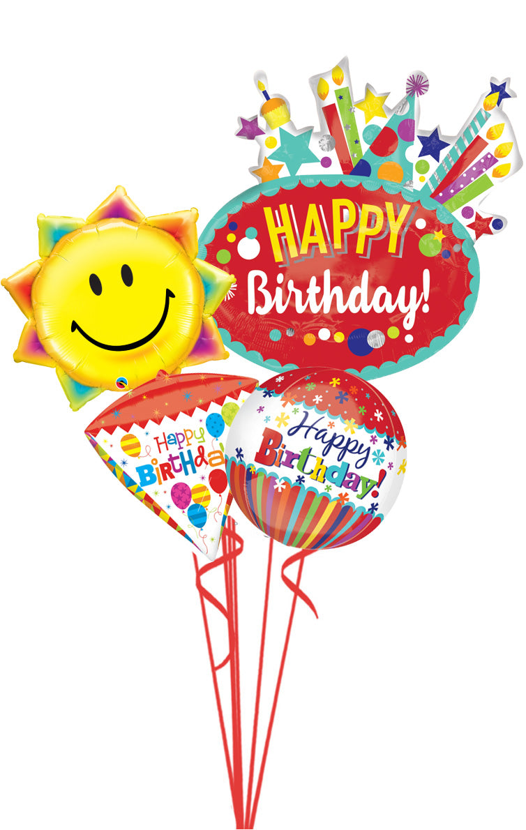 These usually have helium balloons with fun designs, like stars, hearts, or numbers showing the birthday age. They are great for adding bright colors to the stage.
